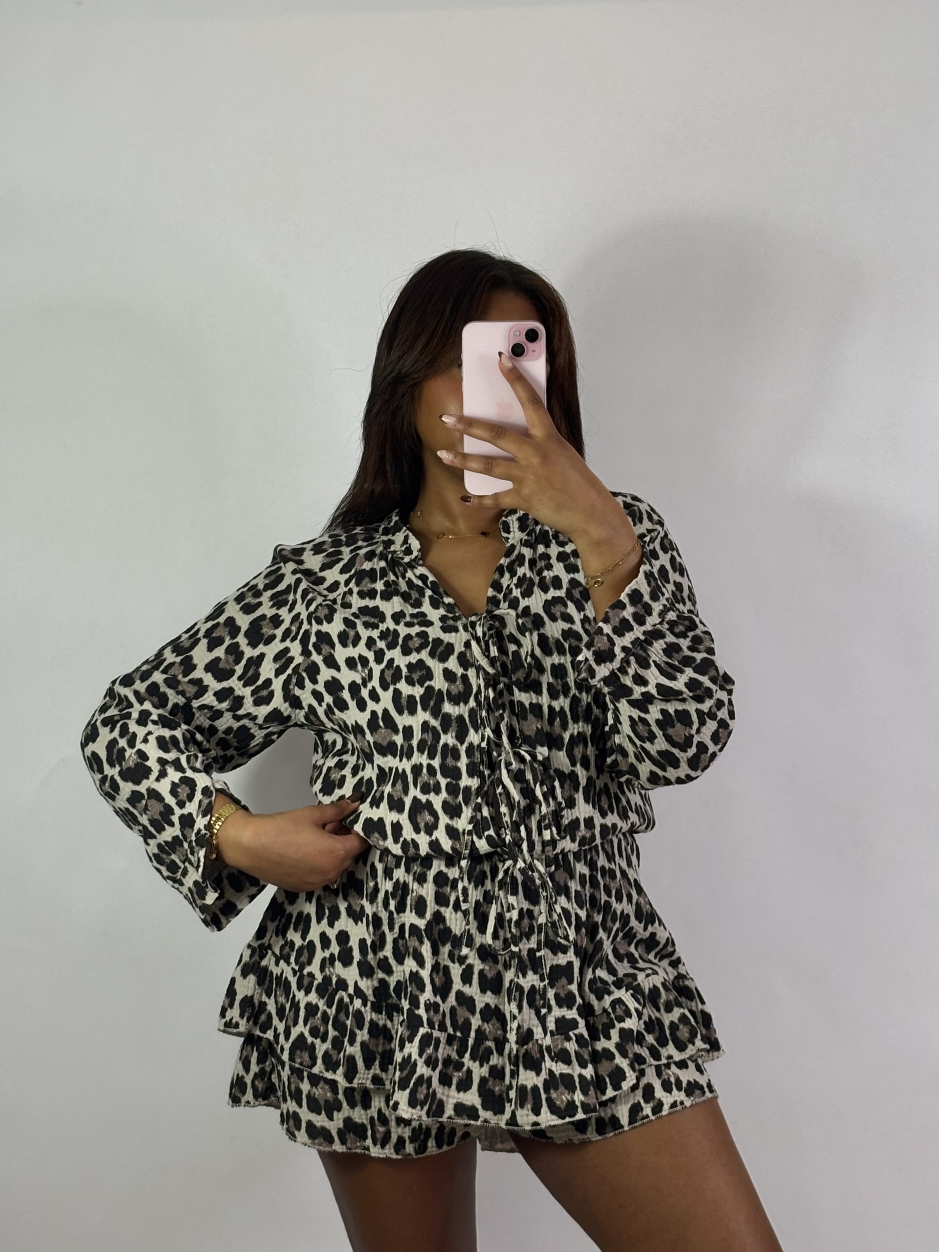 - Combi short en gaz de coton, motif léopard